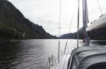 Mit schwachen achterlichen Winden haben wir auf diesem Stück fast mehr Geschaukel als im Golfo del Penas, obwohl die See eigentlich weniger wild ist. Die Nacht verläuft ohne weitere Zwischenfälle. Bei gutem Wetter unter blauem Himmel fahren wir in die breite Einfahrt der Bahia Anna Pink ein. War im äußeren Süden jeder zweite Namen mit Desolation (Verwüstung) verwandt, kam nach der Magelanstraße ein wenig Zuversicht in Spiel. Viele Namen haben dort was mit Esperanza (Hoffnung) zu tun. Auch wenn Ultima Esperanza (letzte Hoffnung) nicht wirklich zuversichtlich klingt, passt es doch zur Gegend. Pink dagegen passt überhaupt nicht, und wirkt ganz fremdartig. Aber was Entdeckern alles einfallen kann … wenn etwas abseits der Hauptroute nachsieht, dann findet man z. B. auch eine Ihla Jungfrauen, die sich mitten in einem Estero Fallos befindet …