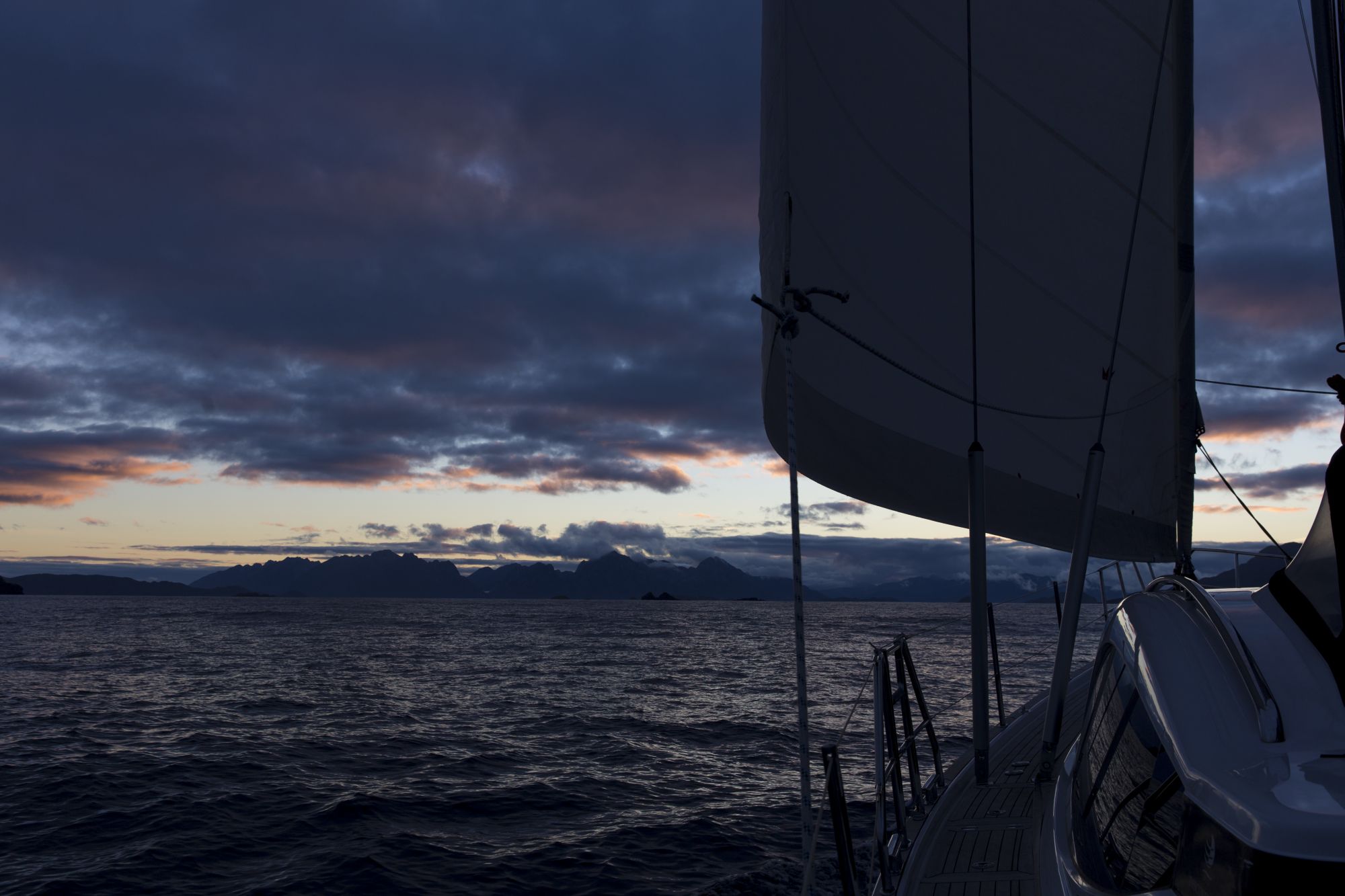 Einfahrt in die Bahia Anna Pink im Morgengrauen