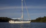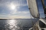 Auch wenn es für uns Nordwind-Geplagte so klingen mag, das Folgende ist kein Märchen! Am früheren Morgen kündigt sich Südwind durch leichtes Schlagen der Wellen am Heck an. Schnell raus hier, bevor er weg ist! Wir verlassen unser windgeschütztes Versteck der Caleta Jacqueline und setzen noch beim Herausfahren aus der Bucht die Segel. Schon den dritten Tag in Folge bleibt der Himmel strahlend blau. Heute keine Wolke am Himmel! Im Süden hebt sich der majestätische schneebedeckte Gipfel des Monte San Valentin, mit 4.058 Metern weit und breit der höchste Berg und der alleinige Herrscher über dem nördlichen patagonischen Eisschild.
