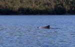 Als wir wieder unten am Dinghy ankommen, ruhen wir uns nach dem Kampf erstmal aus bevor wir zurück zum Boot fahren. Dabei entdecken wir die unverwechselbaren Finnen zweier eigentlich recht scheuer Weißbauchdelfine, die ganz nah bei uns am Ufer vorbei schwimmen. Natalya überlegt, ob sie badet, in der Hoffnung, mit den Delfinen schwimmen zu können. Das Wasser ist aber so kalt, dass sie sich auf Füße Baden begrenzt. Ein Seelöwe schaut kurz aus dem Wasser. Auf den Felsen entdecken wir eine für uns neue Art Kormoran: die Buntscharben. Im Gegensatz zu allen bisher gesehenen Arten haben sie knallrote Füße. Man fragt sich schon, welche Vorteile die Evolution in diesem Merkmal gefunden hat. Welche Vorteile gegenüber dezenteren Farben bringen sie einem fast schwarzen Vogel?