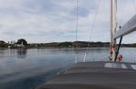Wer hätte je gedacht, das wir so schnell nach Los Angeles kommen! Das kleine verschlafene Nest mit einigen hundert Einwohnern liegt auf einer kleinen Insel vor Chiloe. Als wir in die Bucht hineinfahren, macht der Skipper Witze, dass wir hier gar keinen Anker brauchen. Das Wasser ist absolut ruhig, nicht mal ein Windhauch ist zu spüren. Unser Eisen fällt dann auf 25 m Wassertiefe. Es sind dann doch recht viele Bojen der lokalen Fisch- und Muschelzucht in der Bucht.
