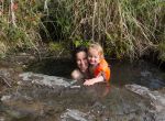 Kein anderer Mensch ist da. Wir freuen uns, dass kein Wärter von uns Eintrittsgeld verlangt. Termen sind in Chile nicht wirklich billig. Man zahlt an anderen Stellen für eine Person 15-20 Euro am Tag. Unsere Kinder testen die Wassertemperatur. Die Quelle an sich ist so heiß, dass man dort eher kochen als baden kann. Im Uferfels sind mehrere Becken gehauen, die durch Zu- und Abflüsse miteinander verbunden sind. Durch Regulation der Wasserzufuhr kann die Temperatur der Becken geändert werden.