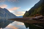 In dichtestem Nebel gehen wir am Morgen Anker auf. Vorsichtig tasten wir uns mit Hilfe des Radars an den Salmoneras in der Bucht vorbei. Etwas weiter von der Insel Mechuque entfernt lichtet sich der Nebel und wir sehen die Berge unseres Ziels in der Morgensonne.