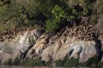 Die Zeit drängt, daher entscheiden wir uns gegen den Estero Quintupeo und wollen auf dem kürzesten Weg nach Puerto Montt segeln. An einem sonnigen Vormittag gehen wir Anker auf. Auf dem Weg aus dem Estero Cahuelmo entdecken wir eine riesige Seelöwenkolonie. Hunderte, wenn nicht gar über Tausend Tiere liegen dicht aneinander gedrängt auf der steilen Küste im Schatten der Bäume. Kein Wunder, dass wir sie beim reinfahren nicht entdeckt haben. Wer erwartet schon Seelöwen unter den Bäumen? Ganz nah, bis auf wenige Meter tasten wir uns mit der Outer Rim heran, um die Tiere zu beobachten. Viele Jungtiere sind dabei. Offensichtlich geht es der Kolonie trotz El Ninos und der damit verbundenen Schäden ganz gut. Widerwillig drehen wir nach einer Weile ab und fahren weiter. Es geht nach Norden am Ostufer der Insel Llancahue entlang.