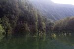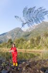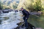 Beim Ankern im Estero Quintupeu man den gewaltigen Tidenhub berücksichtigen. Wir sind bei Hochwasser angekommen. Wer in 10 Metern beim Flut ankert, liegt bei Ebbe auf dem Trocknen (was uns dann tatsächlich fast passiert wäre, wenn wir nicht in der Nacht noch etwas Kette aufgeholt hätten). Die gesamt Crew steigt ins Dinghy und fährt in einen kleinen Fluss hinein, der aus dem Kopf des Fjordes heraus sprudelt. Bei Hochwasser ist dieser gerade noch navigierbar: einige massive Felsbrocken liegen im Weg. Wir schalten den Motor aus, und lassen die Strömung uns zurück tragen. Als wir unter einem großen Laubbaum gleitet, ergießt ein Goldregen an gelben Blättern über uns. Der Herbst ist deutlich im Anmarsch.