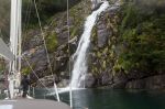 Als wir am nächsten Morgen aus dem Fjord rausfahren, ist die Sonne weg. Alles ist in geheimnisvollen Nebel gehüllt. Was für ein Glück wir gestern mit dem Wetter hatten! Thomas steuert die Outer Rim bis auf weniger Meter nah an einen mächtigen Wasserfall heran. Die Wände des Fjordes fallen hier so steil ab, dass wir wahrscheinlich problemlos auch unter dem Wasserfall hätten stehen können. Vor dem engen Einfahrt drehen wir uns voller Wehmut noch mal um, allerdings dieses Mal ohne Kurs zu wechseln. „Patagonien ade!“