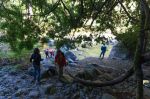 Der Rückweg führt am Rande eines ziemlich unwegsamen Hanges und ist zum Teil so steil, dass nicht nur Arvid, sondern auch Talora festgehalten werden müssen. Unter uns rauscht ein Wasserfall. Sein Wasser zerbricht in Abertausende kleine Regenbögen. Während Natalya Talora und Arvid weiter führt, versucht Thomas diese Stimmung mit seiner Kamera einzufangen, was gegen die Sonne recht schwierig ist.