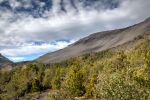 Das Wetter bessert sich, die Sonne kommt heraus. Wir wollen heute noch durch die Wälder an den Hängen des Vulkans wandern. Daher verlassen wir den National Park und fahren zurück zum Parkeingang. Da wir keine detalierte Wanderkarte für die Gegend haben, gestaltet sich die Suche nach einem Wanderweg nicht wirklich einfach. Die Touristeninformation verspricht von weitem zwar viel, ist aber außerhalb der Haupsaison geschlossen. Wir lassen das Auto stehen und laufen auf gut Glück los. Weiter oben lässt sich eine aus Holz zusammengezimmerte Aussischtsplatform entdecken. Ein Weg wird schon dorthin führen. Tatsächlich entdeckt Thomas nach einer nicht so lange Suche einen schmalen Trampelpfad, der in die Richtung geht.