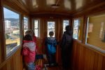 In der Nähe entdecken die Kinder einen historischen Aufzug den Berg hoch kriechend und wollen ihn sofort auch ausprobieren. Der mehr als 100 Jahre alte Aufzug besteht aus zwei miteinander verbundene Holzgondeln, die im Gegentakt hoch und runter fahren. Um 1900 verfügte die Stadt über jede Menge dieser Aufzüge davon, heute fahren nur noch wenige. Der Rest zerfiel langsam mit der Zeit mangels des Geldes für die Instandhaltung. Die ersten Aufzüge funktionierten alleine anhand der Schwerkraftes. Die nach unten fahrende Gondel hat ihr am gleichen Seil hängendes Gegenstück nach oben gezogen. Waren zu wenige Passagiere eingestiegen, wurde in den Tank der oberen Gondel Wasser gepumpt, um die Gondel schwerer zu machen. Das dauerte bestimmt! Deswegen wurden neuere Aufzüge mit Elektromotoren gebaut bzw. ältere sukzessive umgerüstet. Aber was heißt hier schon neu?