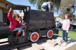 Arvid ist Feuer und Flamme auch die im Bahnhof stehenden Züge und Wagons zu sehen. Aber hinter dem Bahnhof herrscht noch mehr Zerfall als in dem Gebäude an sich. Wir werden darauf hingewiesen uns den alten Waggons unter dem Dach nicht zu nähern, es könne jeder Zeit einstürzen. Die Gleise enden nach einem kurzen verkommenen Stück auch in nirgendwo. Arvid versteht nicht ganz, warum alles so kaputt ist. Dafür haben die Kinder viel Spaß beim Besteigen der beiden vor dem Gebäude abgestellten Dampflokomotiven. Hier kann nach Herzenslust gespielt werden.