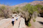 Mit vollem Tank und ordentlichem Wasservorrat verlassen wir Copiapo ohne ein bestimmtes Ziel im Auge zu haben. Wir wollen die Umgebung von Copiapo erkunden und außerdem unseren Wagen testen. Der Weg führt uns durch ein enges Flusstal. Zu unserer Überraschung führt der Fluss tatsächlich Wasser. Seine Ufer sind von Weinreben gesäumt. Wein aus der Atacama? Haben wir noch nie gehört!