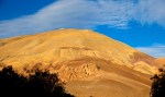 Den Betreibern scheinen auch die umliegenden Weinfelder zu gehören. Sie verraten uns, dass die Trauben nicht für die Weinherstellung, sondern für den Verzehr bestimmt sind, und überwiegend nach China und Japan exportiert werden. Als wir zwischen den Feldern spazieren gehen, entdecken wir in regelmäßigen Abständen ordentliche Holzhaufen und eingegrabene Teerfässer. Sollten die Temperaturen unter den Gefrierpunkt fallen, werden Feuer entfacht, um die Reben vor dem Erfrieren zu schützen. Selbsverständlich muss jede Rebe auch bewässert werden. Was für ein Aufwand! Da wundert man sich nicht mehr, das eine klitzekleine Tüte Rosinen im Supermarkt fast einen Euro kostet. Am Abend sitzen wir auf unsere Terasse und bewundern das warme Leuchten der Berge in der untergehenden Sonne.