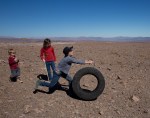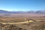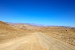 Christian zeigt uns beim Verabschieden noch eine Abkürzung, die uns nach Copiapo bringt, ohne das wir zurück nach Inca de Oro fahren müssen, wofür wir uns bei ihm bedanken. Im Gegensatz zu der Hauptstraße führt der Weg quer durch die Hügeln, von deren Spitzen man einen weiten Blick über die in den warmen Abendlicht getauchten Wüste ergattern kann.