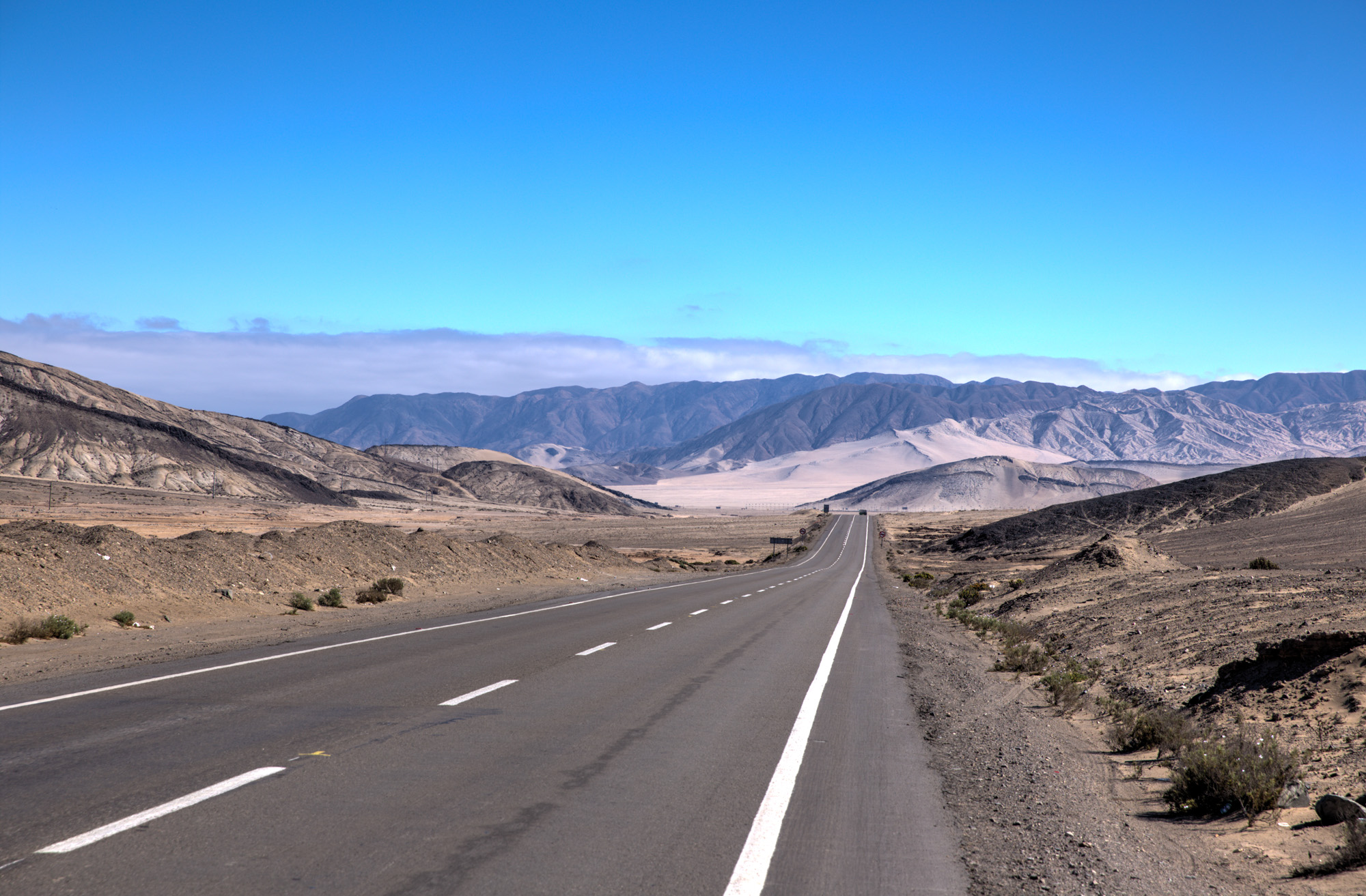 Im Hintergrund ist der Küstennebel zu sehen … der Grund für die Trockenheit der Atacama