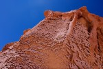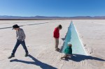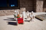 Auf knapp 3.500 Metern Höhe halten wir am Salinas Grandes del Nordoeste. Dieser über 200 Quadratkilometer große Salzsee besteht größtenteils aus einer meterdicken Salzschicht. Zum Zweck der Salzgewinnung werden in der Oberfläche des Sees tiefe Rinnen ausgehoben. Hier kristallisiert das Salz in reiner Form aus und kann anschließend geerntet werden. Enorm große Salzhaufen zeigen, das die Salzgewinnung hier in großem Stiel erfolgreich ist. Das bescheidene Rasthaus auf der anderen Seite der Straße ist aus Salzsteinen gebaut. Auch das innere Inventar – die Tische und die Höcker sind aus massivem Salz. Vor dem Haus verkaufen die Einheimischen kleine aus dem Salz geschnitzte Tierfiguren. Die sehen zwar nett aus, würden aber den Aufenthalt in der Feuchte von Puerto Montt sicher nicht überleben.
