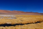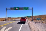 Die Strecke führt uns weiter, durch die einmalige Landschaften der schroffen Andengipfel, der türkisfarbenen Salzllagunen und stachelign aussehende Grasebenen. Zwei besonders schöne Lagunen können wir nicht erreichen, da sie schon in Bolivien liegen. Dieses Mal sucht die Höhenkrankheit Arvid als Opfer aus. Immerhin überschreiten wir auch heute wieder die 4.600 Meter und bleiben lange über 4.000 Metern. Während wir zügig auf den kerzengeraden Straßen durch das Hochplateau fahren, jammert der kleiner Kerl auf Mamas Schoß, bevor er sich in den Schlaf flüchtet. Erst nach einigen Stunden dürfen wir wieder absteigen.
