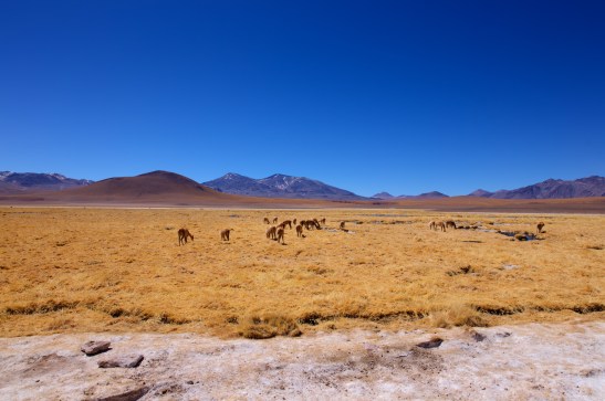 Eine Herde Vikunjas