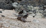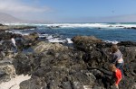 Die letzten Kilometer nach Copiapo sind richtig interessant. Hier kann man live erleben, warum die Atacama-Wüste so trocken ist. Die Straße führt direkt am Ozean entlang. Links von uns sind trockene, braune Felsen ohne jede Vegetation und mit schönstem Sonnenschein, rechts von uns der Ozean mit einer geschlossenen Wolkendecke darüber. Der kalte Humboldtstrom lässt alle Feuchtigkeit kondensieren und abregnen. In der Wüste kommt nichts an. Wir schauen uns das Phänomen am Strand aus nächster Nähe an.
