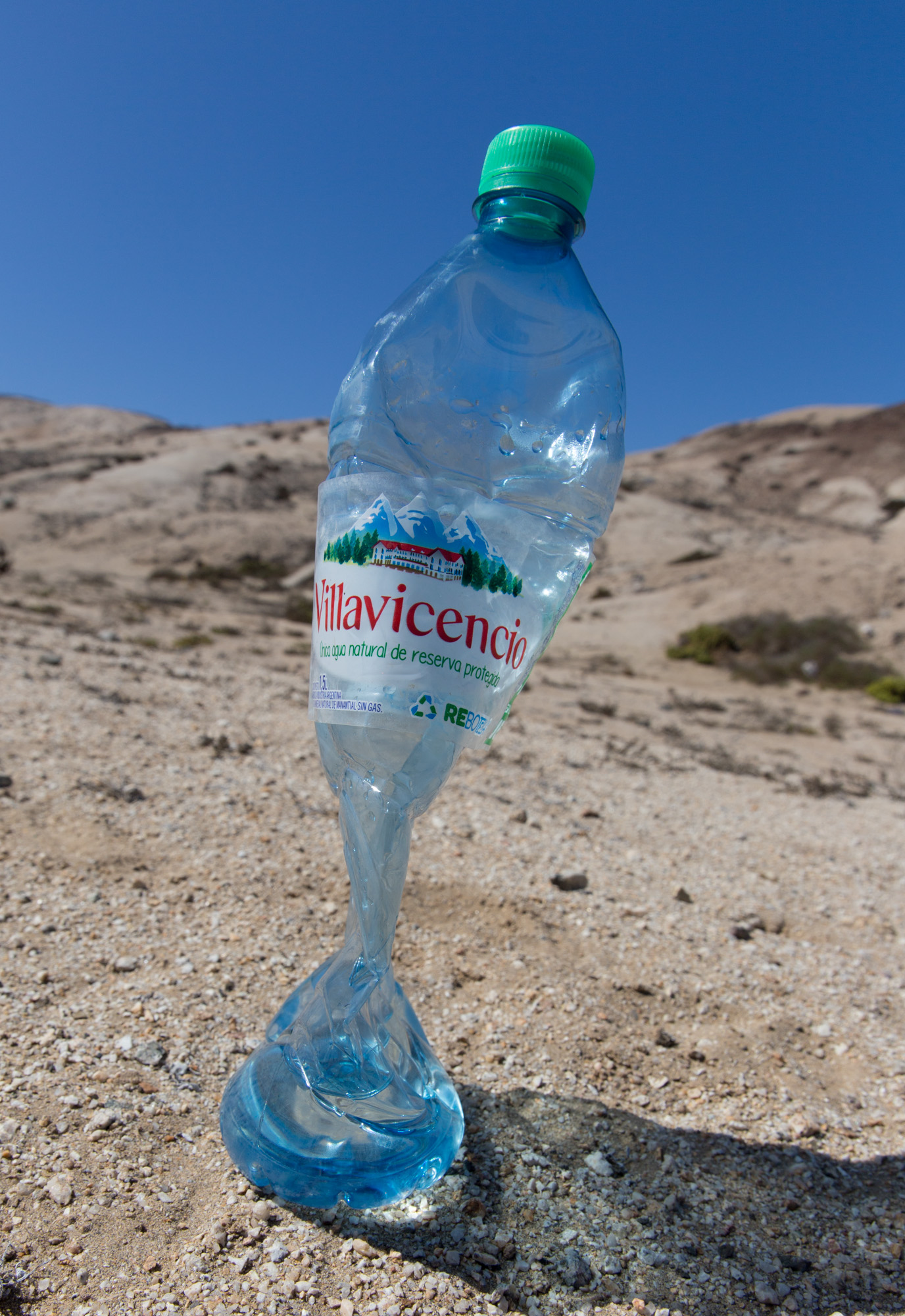 Druckunterschied anschaulich: Diese Flasche haben wir auf über 4.000 Metern verschlossen. Der Luftdruck auf Meeresniveau hat sich fast plattgedrückt.