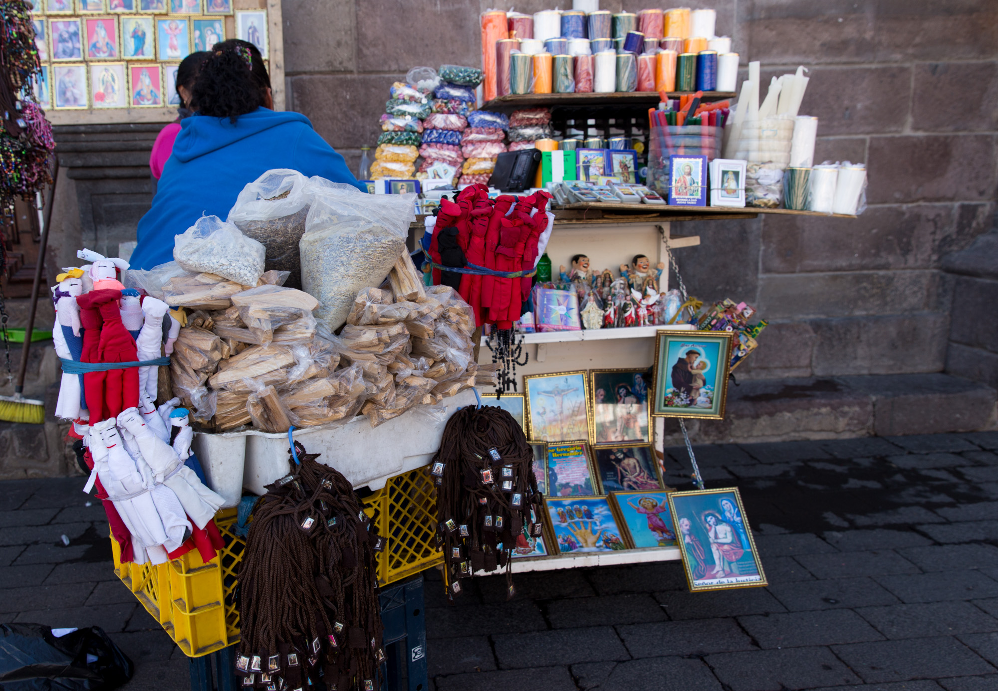 Verkauf von Gegenständen der traditionellen Religionen direkt vor der Kirche