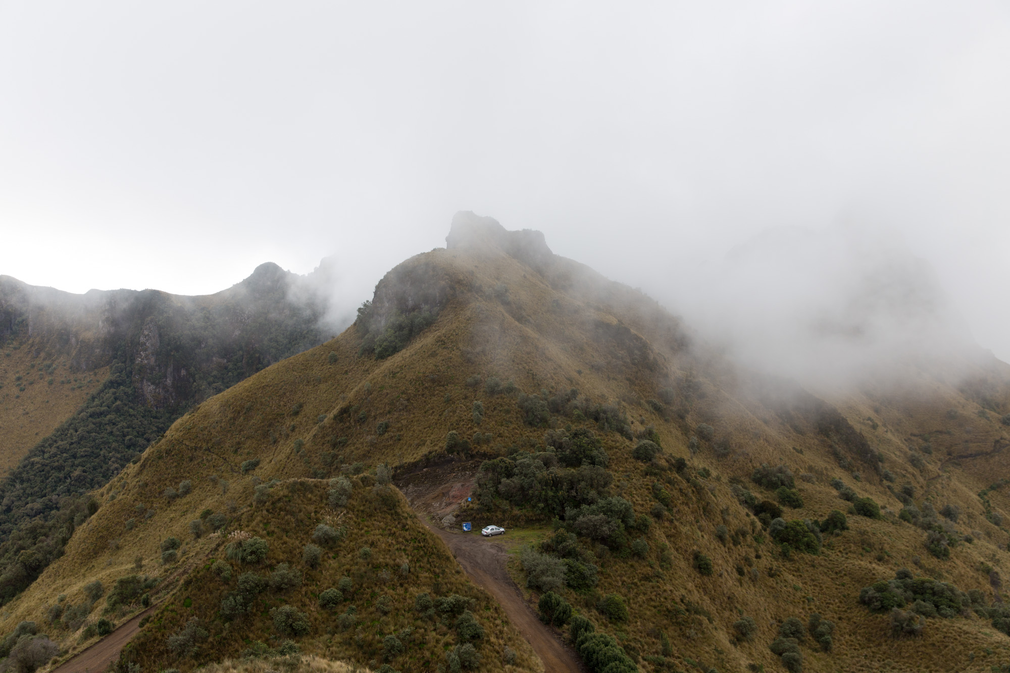 Nebel zieht über den Kraterrand