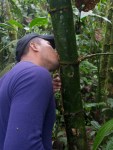 Während wir am nächsten Morgen auf das Frühstück warten, zeigen uns die Indianer all das, was wir ohne ihre Augen nicht sehen … einen großen Vogel in den Baumwipfeln (Natalya sieht ihn nicht mal mit dem Fernglas), ein riesiges Bienennest in luftiger Höhe, eine gelbe Orchidee, die angeblich um die Hundert Dollar Wert ist. Am sonnigen Morgen flattern unzählige Schmetterlinge über den Blüten eines uns unbekannten Baums am Flussufer. Wir können aus der Nähe lange beobachten wie sie mit ihrem langen Rüssel Nektar trinken. Eine Straße der Blattschneideameisen kreuzt den Weg. Von Früh bis spät tragen sie kleine Blattstücke in Richtung ihres Nestes. Die frisch geschnittenen Blätter gehören nicht zu ihrer Nahrung. Damit werden im Bau Pilze gezüchtet, die den Ameisen schmecken. Die Symbiose zwischen dem Pilz und den Ameisen ist so eng, dass beide ohne einander nicht überleben können.