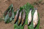 Vsevolod tigert schon traurig um die Küche herum. Eigentlich sind die Portionen nicht üppig, und wenn man die Bananen weg lässt für einen schnell wachsenden Jungen eher dürftig. Dann lässt das Essen noch so lange auf sich warten. Doch jeder bekommt gleich viel – sowohl Arvid als auch unsere Führer und ihre Familienmitglieder. Hier ist man gewohnt sparsam zu leben und mit Wenigem zufrieden zu sein. Nichts wird weggeworfen. Unser Begleiter isst seinen Fisch so sauber ab, dass die Gräten am Ende glänzen. Unter seinen Füßen wartet ein Hund, der die blitzebanken Gräten mit Gier und Vergnügen restlos aufisst. Jeder anständige Hundebesitzer im Deuschland würde bei dem Vorschlag seinen Hund damit zu füttern ein Schaudern kriegen, doch diesem Tier scheinen die spitzen Gräte nichts auszumachen.