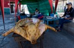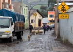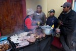 Als wir am Abend durch die Stadt schlendern, beobachten wir eine Familie, die ein schwarzes gut genährtes Schwein an einem Strick mit sich führt. Das arme Tier will nicht über die Gleise und wird so lange gezogen und geschlagen, bis es doch nachgibt. Am Bahnhofplatz werden gegrillte Hüherfüße verkauft. Unsere Kinder wundern sich: „Warum grillt man das? Da ist doch nichts dran?“ Doch hier wird nichts weggeworfen. Auch aus Schweineschwarte werden streifen geschnitten und zum Bohnen serviert. Leider können wir den Markt nicht besichtigen. Er findet nur ein Mal die Woche statt, und wir sind einen Tag zu spät. Nach einer Übernachtung fahren wir weiter – nach Riobamba.