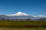 Der frühe Start lohnt sich wieder. Der erloschene Vulkan Chimborazo, mit 6310 Metern der höchste Berg Ecuadors, erhebt sich mächtig am Horizont. Kaum eine Wolke beeinträchtigt die Sicht. Der vergletscherte Berggipfel leuchtet in der morgendlichen Sonne. Mit dem Blick auf den Vulkan fahren wir über kleine Straßen bis in die zu Kolonialzeiten recht bedeutende Stadt Riobamba.