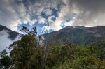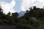 Während Natalya ihnen beim Schwimmen zuschaut nutzt Thomas die Zeit, um schnell auf einen Hang des Vulcan Tungurahua hochzusteigen. Zuerst fährt er mit unserem für diese Zwecke eher bedingt geeigntn Auto eine abenteuerliche Straße hoch. Als es nicht mehr weiter geht, steigt er aus und geht weiter zu Fuß. Der Weg schlängelt sich durch dichten Bergnebelwald dem Gipfel entgegen. Wegen ordentlichem Zeitdruck und der Höhe von über 3.500 Metern kommt er ziemlich schnell ins Schwitzen. Dennoch geht es im Dauerlauf den Berg hinauf. Die Bäume verdecken den Blick auf den Gipfel, die nachmittäglichen Wolken ziehen die Bergtäler hoch und drohen noch den letzten sichtbaren Teil des Berges zu verhüllen. Hinter jeder Wegbiegung scheint endlich der freie Blick zu kommen … doch wenn man dort ist, ist wieder ein Baum im Weg? Thomas kämpft mit sich … umkehren oder weiter? Dann letztlich öffnet sich tatsächlich der Wald, die Wolken geben den Blick frei und der Gipfel des Vulkans ist zu sehen. Kurz genießen, ein Bild schießen und im Dauerlauf wieder absteigen. Die Kinder warten ja und bald wird es dunkel. Auf dem Rückweg gibt es dann noch einen tollen Ausblick auf das tief liegende Tal und die von der goldenen Abendsonne beleuchteten Wolken über den Bergen. Thomas düst ins Tal und kommt schon im Dunkeln beim Rest der (schon fast verhungerten) Familie an.