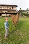 Am Nachmittag taucht im Garten des Hotels ein gutmütiges Lama auf. Das zahme Tier darf gestreichelt werden. Als unsere Kinder es versuchen, ist schwer zu sagen, wer vor wem mehr Angst hat. Die Hotelbesitzerin zeigt den Kindern wie man das Lama mit Zucker anlockt. Beim Abendessen treffen sich alle Gäste im Wohnzimmer des Hotels. Es ist eine bunte Mischung. Eine deutsche Studentin, die ihr Biologiestudium fertig gebracht hat, um festzustellen, dass man ohne Promotion kein Job bekommt. Seitdem reist sie mit einem ziemlich engen Büdget durch Südamerika. Eine Koreanerin mit ihrem 6 Jahre alten Sohn, die mit einem Rucksack überwiegend zu Fuß durch Venezuela und Kolumbien marschiert ist und noch weitere 12 Monate so durch Südamerika tingeln will. Da fällt unsere Geschichte gar nicht so sehr auf.
