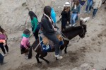 Talora vergisst augenblicklich ihre schmerzenden Füße und ist wunschlos glücklich, auf einem Pferd reiten zu dürfen. Dafür dass Arvid vor dem Aufsteigen aufgeweckt wurde, hält er sich wacker und sitzt souverän alleine im Sattel. Natalya will die Kinder nicht alleine lassen und rennt den Pferden nach. Die Luft fehlt, der Schweiß rennt das verstaubte Gesicht herunter, das Herz klopft bis zum Hals. Nur dem Pferdeführer fehlt nichts. Er ist fit und leicht zu Fuß. Den ganzen Tag pendelt er mit seinen Tieren im Eiltempo hoch und runter. An einem Tag wie heute nimmt er mehr Geld für den Service ein, als ein durchschnittlicher Ecuadorianer in einem Jahr verdient – bei 10 Dollar pro Pferd und Ritt kein Wunder! In der Mitte des Weges entdeckt Natalya Franka, die knallrot und verschwitzt von der Abkürzung wieder auf den Weg kommt. Sie darf sich hinter Arvid aufs Pferd setzen. Froh und munter kommt die ganze Gruppe wieder am Kraterrand an. Auch Thomas und Vsevolod sind schon da.