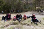 Nach einiger Zeit am Wasser machen wir uns an den Aufstieg. Thomas und Vsevolod gehen zu Fuß vor. Die anderen wollen den Aufstieg zu Pferd bewältigen. Doch auch dort steht eine lange Schlange. Während wir eine Viertelstunde dort stehen, kommen zwei Pferde an. So haben wir keine Chance ein Lasttier zu bekommen. Natalya schickt Franka auf einer Abkürzung vor, packt den schlafenden Arvid auf den Arm und steigt zu Fuß auf. Nach den ersten Hundert Metern stellt es sich heraus, dass Talora nicht weiter laufen kann. Es geht nicht um Unlust, die Füße tun so weh, dass sie nicht weiter gehen kann. Natalya geht mit einem schlafendem Kind in einem Arm und einem fast heulenden an der anderen Hand langsam hoch. Als ihnen ein Treiber mit zwei Pferden entgegen kommt bettelt Natalya ihn an, die Kinder mitzunehmen. Bereitwilliger als gedacht dreht er um und setzt Talora und Arvid auf die Pferde. Jetzt ist klar, warum keine Pferde bei der wartenden Menschenschlange ankommen. Alle werden vorher abgefangen ohne dass sie ganz nach unten kommen.
