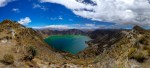 Unten angekommen, setzen wir uns erstmal hin um zu verschnaufen und die Nähe des Wassers zu genießen. Baden sollte man hier nicht. Das Wasser des Kraters enthält ungesunde Mineralien, ist stark alkalisch. Jedoch darf man hier Kajak fahren. Vsevolod würde sich gerne eines mieten, doch die Warteschlange ist so lang, dass man vermutlich mehrere Stunden warten muss, um eines zu ergattern. So wie häufig in Südamerika, darf man dann mit dem Kajak auch nicht frei am See paddeln. Stattdessen hat man einer der drei vorgeschriebenen Routen, je nach Dauer der Fahrt, zu folgen.