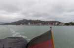 Kaum ist der Anker gefallen, kommt schon unser Agent (den braucht man hier, um einzuklarieren) an Bord und kündigt den Besuch der Offiziellen an. Eine Stunde später ist unser Cockpit mit Mitarbeitern der Armada, der Gesundheitsbehörde, der Immigration und einigen mehr bevölkert. Wir hatten so viele Schreckensgeschichten über die Probleme anderer Segler beim Einklarieren gehört. Unser Rumpf wird gründlich abgetaucht und keine „gefährlichen“ Organismen gefunden. Thumbs up! Auch der Rest der Prozedur erfolgt schnell und unkompliziert. Unsere für 5 Dollar gekaufte Bescheinigung, die bestätigt, dass unser Schiff in Bahia de Caraquez ausgeräuchert wurde, wurde anstandslos akzeptiert (typisch Südamerika). Keine Bilge wurde kontrolliert, nur der Kühlschrank kurz geöffnet. Alles kein Problem. Schnell wird noch ein Bild des mit Beamten gefüllten Cockpits gemacht (scheinbar als Nachweis, dass diese tatsächlich an Bord waren), und schon erhalten wir unsere Papiere zurück und sind einklariert.