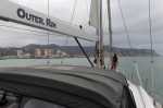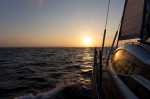 Mit Einbruch der Dunkelheit geht die Crew in die Kojen – bis auf den Skipper natürlich. Dann geht es erst richtig los. Als erste Vorboten erscheinen vereinzelt weiße Lichter blinkend und auf den Wellen tanzend am Horizont. Dann werden es immer mehr, teilweise sitzen hell erleuchtete Fischerboote mitten drin. Es dauert etwas bis klar wird, dass die Lichter zu großen Stellnetzen gehören. Der Skipper erinnert sich an die letzte Überfahrt: „Also lieber nicht rein fahren!“. Die Fischer scheinen der selben Meinung zu sein und blinken uns mit grellen Scheinwerfern und grünen Laser-Strahlern an. Ja, schon verstanden, aber wo endet das Netz? Wo beginnt das Netz des nächsten Fischers? Gibt es einen Weg dazwischen? Bei jedem Ausweichen kommt ein neues Hindernis dazu. Von Hart am Wind – Abfallen – Ausweichen – Vorwind – Genua rein – auf der anderen Seite raus. Die Fahrt gestaltet sich wie ein Zickzack durch den Lichterwald. So etwas hatten wir noch nie. Es sieht so aus, als wäre das Meer voll mit riesigen Spinnen, die in ihren blinkenden Netzen auf unachtsame Segler warten.