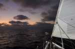 Um 3 Uhr morgens ist der Spuk vorbei … aber nur um von den kleinen Fischer-Schaluppen abgelöst zu werden. Die sind unbeleuchtet und machen nur kurz eine Taschenlampe an, wenn man zu nahe kommt. Dabei sind sie so klein, dass man sie hinter dem nächsten Wellenberg nicht mal auf dem Radar sieht. Auch hier ist permanente Aufmerksamkeit gefordert. Am Morgen nach einer schlaflosen Nacht ist der Skipper fix und fertig und will ein wenig Schlaf nachholen. Franka und Vsevolod treten ihre Wache an. Kaum liegt Thomas in der Koje kommt schon der Ruf: „PAPA – EIN FISCHER!!“. Erster Blick durch die Frontscheibe zeigt ein offenes Fischerboot fast formatfüllend nur 10-20 Meter vor uns. Schnell raus, Autopilot aus und Ruder herumreißen. Gerade noch rechtzeitig weniger als 10 Meter bevor wir im Netz gesessen hätten. Die Fischer leiten uns meilenweit an ihrem fast unsichtbaren Netz entlang bis zur Endfahne. Dann ist der Weg frei. Siebzig Meilen von der Küste entfernt lassen wir das letzte Fischernetz hinter uns.