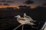 Am nächsten Tag dreht der Wind mehr auf Süd und weht mit 8 bis 10 Knoten. Wir können etwas abfallen und kommen wider Erwarten gut voran. Mit 8 Knoten über Grund gleitet Outer Rim durch das ruhiges Meer. Während der müde Skipper versucht am Tag ein-zwei Stunden Schlaf nachzuholen, vergnügen sich die Kinder mit Hörspielen und bauen Lego. Am Abend landen zwei Vögel auf unserer Reling. Auf dem offenen Meer nutzen sie die Outer Rim als Taxi oder Gelegenheit sich auszuruhen. Thomas macht schnell zwei Bilder, aber die Vögel sitzen bis tief in die Nacht bei uns. Später entdecken wir auf den Bildern, dass es sich um Rotfußtölpel handelt, die wir hoffen, auch auf den Galapagos-Inseln zu sehen. Es sind die einzigen Tölpel, die auf Bäumen brüten und daher in der Lage sind, Äste mit ihren Füßen zu umklammern – und damit auch die einzigen, die auf einer Reling sitzen können.