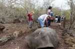 Wir sind schon seit Wochen auf San Cristobal und haben immer noch keine einzige Landschildkröte gesehen. Leider liegen sie nicht in den Straßen herum wie die Seelöwen und die Echsen. Seit der Entdeckung der Inseln landeten Zehntausende Riesenschildkröten in der Suppe von Piraten und Walfängern. Was die wenig zivilisierten Räuber übrig gelassen haben, nahmen später Pseudowissenschaftler mit, unter dem Vorwand die akut bedrohten Arten so vor dem Aussterben zu schützen und ihr Überleben in der Gefangenschaft zu sichern. So wurden alle auf den Galapagos Inseln endemischen Schildkröten entweder ausgerottet oder an den Rand des Aussterbens gebracht. Prominentes Beispiel dafür ist bzw. war „Lonesome George“, dem letzten Exemplar der Pinta Schildkröte. Nachdem zahllose Paarungsversuche mit verwandten Arten fehlschlugen verstarb das einsame Tier.