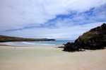Der nächste Punkt unseren heutigen Programms ist der wunderschöne Sandstrand Puerto Chino. Ein relativ kurzer Sandstreifen am offenen Pazifik, mit türkisblauen sanften Brandungswellen und feinstem weißen Sand, der weicher ist als frischer Puderzucker. Das kühle Wasser wirkt erfrischend. Unsere Jungs hüpfen mit Vergnügen in den Wellen. Zwischen den Steinen laufen Lavamöven und Lavareiher. Aus unerfindlichen Gründen gibt es auf so einem schönen Fleck nur einen Seelöwen. Die anderen finden wohl das Landleben zu öde und sind alle in die Stadt umgezogen?