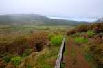 Zum Abschluss des Tages laufen wir noch zur Laguna el Junco. Das ist die einzige Süßwasserlagune auf der ganzen Inselgruppe. Fregattvögel kommen hierher, um Salz aus ihrem Gefieder zu waschen. Heute liegt die Lagune im Nebel, das Wasser ist kaum auszumachen. Wie durch ein Wunder öffnen sich die Wolken für einen kurzen Augenblick und wir können den Fregattvögeln beim Baden zuschauen. Doch dann schließen sich die Wolken wieder und alles verschwindet im feinen Nebel.