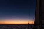 In der Nacht leuchten am wolkenlosen Himmel die Sterne. In den früheren Nachtstunden sind zwei Planeten übereinander deutlich zu sehen: Leicht rötlich der Mars und fast blendend hell die Venus. Sie werden uns die ganzen drei Wochen begleiten. Häufig segeln wir zu Beginn der mondlosen Nächte in die Leuchtspur der Venus auf dem Wasser hinein. Auch die Milchstraße ist gestochen scharf zu sehen. Unsere Kinder werden zu begeisterten Himmelbeobachtern. Da sie keine bekannten Sternbilder finden, erfinden sie selber welche.