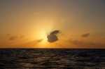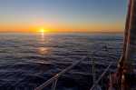 Pünktlich zum Bergfest stirbt der Wassermacher endgültig. Das produzierte Wasser ist nicht mehr als Trinkwasser genießbar. Bisher hatten wir noch 10-20 Liter pro Tag aus den Membranen quetschen können. Jetzt schickt die Automatik das produzierte Wasser direkt wieder ins Meer. Wir koppeln die Automatik ab und füllen das leicht salzige Wasser in alle vorhandenen Töpfe und Schüsseln. Kleine Membranstücke schwimmen im Wasser, scheinbar zersetzen sich die Membrane. Zum Kochen, Kaffeekochen und Brotbacken ist es noch brauchbar. Wir lassen uns die Stimmung nicht vermiesen und feiern am Abend trotzdem. Wir sind genau mitten im Nichts – 1.500 sm vom Land entfernt. Egal in welche Richtung man schaut, das Land ist unglaublich weit weg. Am Abend, kurz vor Sonnenuntergang kommen Delfine und springen hoch in die Luft. Feiern sie mit uns?