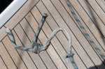 In der Nacht kommt eine Wetterfront und begießt uns mit einem sintflutartigen Regenschauer. Es dauert keine fünf Sekunden bis Thomas komplett durchnässt ist. Selbst durch geschlossene und verriegelte Fenster dringt Wasser ins Boot ein. Doch der Spuk ist bald vorbei, genauso wie der Wind. Uns bleibt nur eine aufgewühlte See. Die Wellen spielen mit einem dreißig Tonnen schweren Boot wie mit einem Gummiball. Es wird hin und her geworfen. In der Küche klirrt es, alles was nicht niet- und nagelfest ist, wandert. Das Segel muss weg, zu stark wäre die Beanspruchung durch Schlagen. Wer schlafen will, muss seine Matratze festhalten. Nur die Kinder lassen sich nicht ärgern und schlafen durch und verstehen nicht, warum die Eltern früh am Morgen so hundemüde wirken.