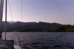 Die Winde auf dem letzten Teil der Strecke sind besser als erwartet. Fast bis zum Ende können wir segeln. Der Motor wird erst für die letzten 20 Meilen angeworfen, damit wir Atuona auf Hiva Oa vor Dunkelheit erreichen können. Wir fahren an der Südküste der Insel entlang, vorbei an schroffen Tälern und grünen Hügeln. Nach drei Wochen in denen wir hauptsächlich blau gesehen haben wirkt das Grün der Insel sicher noch um Größenordnungen saftiger und attraktiver als es eh schon ist. Die tief stehende Sonne tränkt alles mit warmem Licht, kaum eine Wolke ist zu sehen. Mit den letzten Sonnenstrahlen laufen wir ein. Es ist schon so düster, dass wir uns nicht ins Ankerfeld hinein trauen, sondern draußen bleiben. Das Schaukeln sind wir ja gewohnt. Die Luft riecht unglaublich stark nach süßen Blumen. Später kommt noch der Duft des Kokosfeuers dazu. Unsere bis jetzt längste Segelreise ist zu Ende. Nach drei Wochen auf See darf Thomas heute zum ersten Mal wieder durchschlafen.