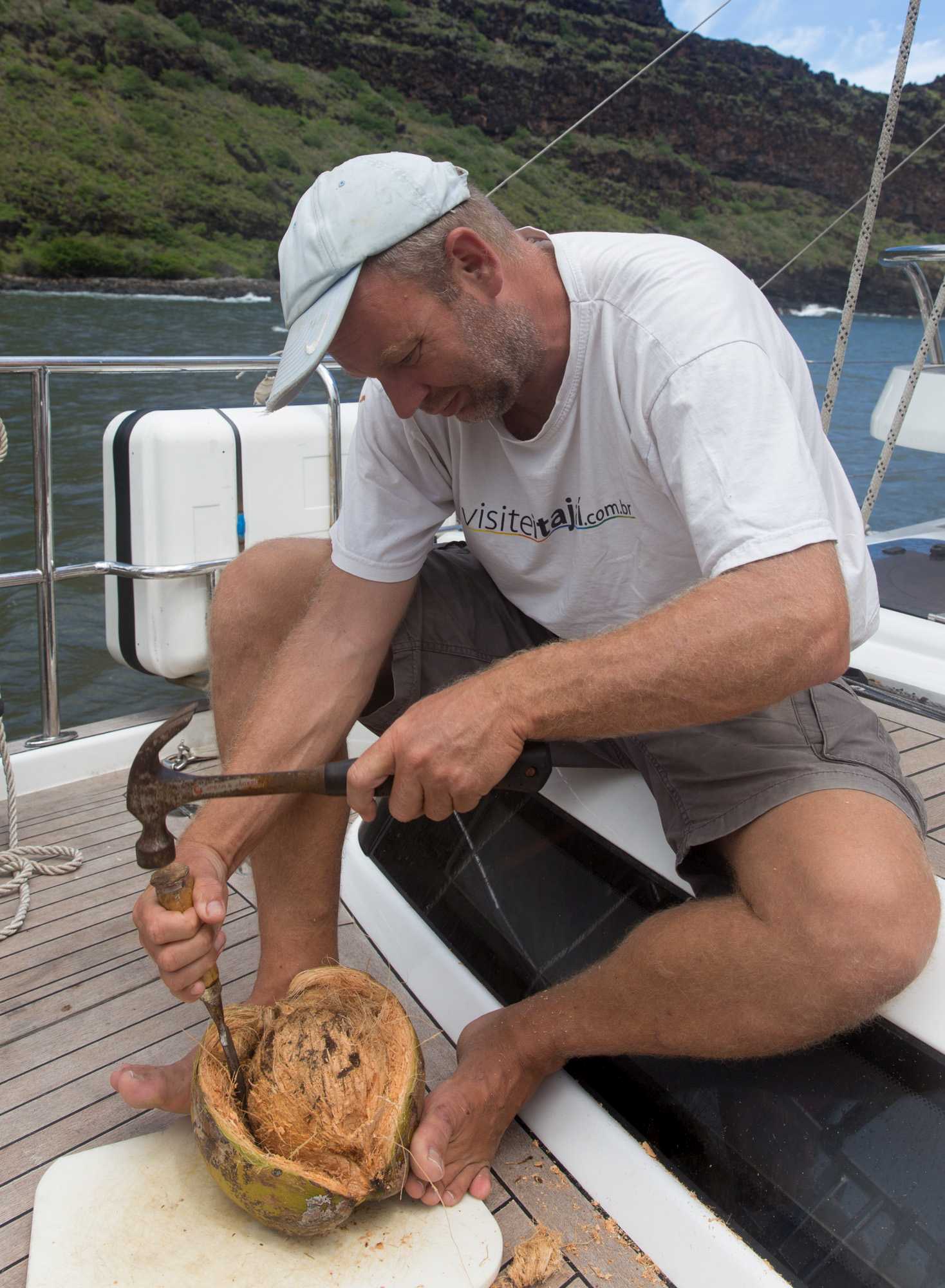 Wir öffnen eine Kokosnuss