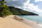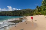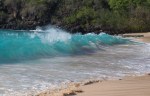 Am Nachmittag wartet ein traumhafter Palmenstrand auf uns, mit weichem weißen Sand, der vom türkisblauem Wasser umspült wird. Trotz des ruhigen Wetters und idealen Sandgrundes ist die Brandung an dem relativ steilen Ufer so mächtig, dass an trockenes Anlanden gar nicht zu denken ist. Natalya und die Kinder springen ins Wasser und schwimmen zum Ufer. Während Natalya schon am Land ist, werden die Kinder unerwartet von einer mächtigen Welle überrascht und ordentlich durchgeschleudert. Natalya rennt wieder zurück, fischt Arvid aus dem Schaum raus, die größeren schaffen es von alleine. Wir haben den Strand deutlich unterschätzt. Thomas fährt zu Outer Rim zurück, um für Arvid eine Rettungsweste als Ersatz für den Schwimmgurt zu holen.