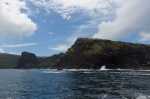 Zur Zeit herrscht auf den Marquesas eine lang anhaltende Flaute. Auf unserem Weg von Tahuata zu einer Bucht im Norden von Hiva Oa können wir nur in einer Düse zwischen den zwei Inseln mit leichtem Wind segeln. Als wir in die Abdeckung von Hiva Oa kommen, verlässt uns der Wind, und wir fahren den Rest der kurzen Strecke unter Motor. Wir steuern die Bucht Hanamenu im Nordwesten von Hiva Oa an. Es ist nur ein kurzer Zwischenstopp auf dem Weg zur Insel Nuku Hiva.