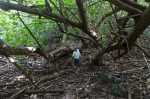 Der Weg verzweigt sich immer weiter und wird undurchdringlicher. Mit kurzen Hosen und Schlappen wird es immer anstrengender weiter voran zu kommen. An manchen Stellen kann man frische Machetenspuren sehen. Aber wer auch immer hier durchgekommen ist, kümmerte sich nur um sein eigenes Durchkommen, und nicht um die allgemeine Instandhaltung des Pfades. Bei den hiesigen Bedingungen wird so ein Pfad schnell vom Dschungel verschluckt. Gefährlich wirkt der Dschungel zwar nicht, und mit Südamerika ist es kein Vergleich, dafür aber umso dichter im Unterholz.