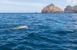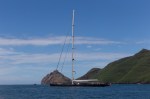 Bevor wir uns entscheiden können, beobachten wir am Morgen einige Dinghys, die mit Vollgas in Richtung des offenen Meeres an uns vorbei rasen. Da muss doch was zu sehen sein. Yann von SY Amarante hält auf dem Rückweg bei uns an und erzählt über eine große Gruppe Mantas, die am Ausgang der Bucht ihre Kreise dreht. Aufgeregt springen wir in unser Schlauchboot und geben ebenfalls Gas – nicht das es schon zu spät ist. Doch die Eile ist gar nicht nötig. Als wir ankommen sind die Tiere immer noch da. Erst sichten wir einzelne Tiere, dann können wir den ganzen Kreis ausmachen. Sie gleiten fast an der Oberfläche, sind aber relativ scheu und mögen das Dinghy nicht wirklich, flüchten aber nicht. Unsere Kinder halten nach alle Richtungen Ausschau, und wir versuchen uns möglichst lautlos (eigentlich ein sinnloses Vorhaben, da Arvid ja auch dabei ist) an die Tiere heranzupirschen. Thomas springt mitten im Kreis ins Wasser. Natalya ist dabei ziemlich aufgeregt: die 4-5 Meter großen Rochen sind überall, um Thomas herum und selbst unter ihm. Es wäre schön, die Maske und Schnorchel dabei zu haben, aber zum Einpacken war keine Zeit.